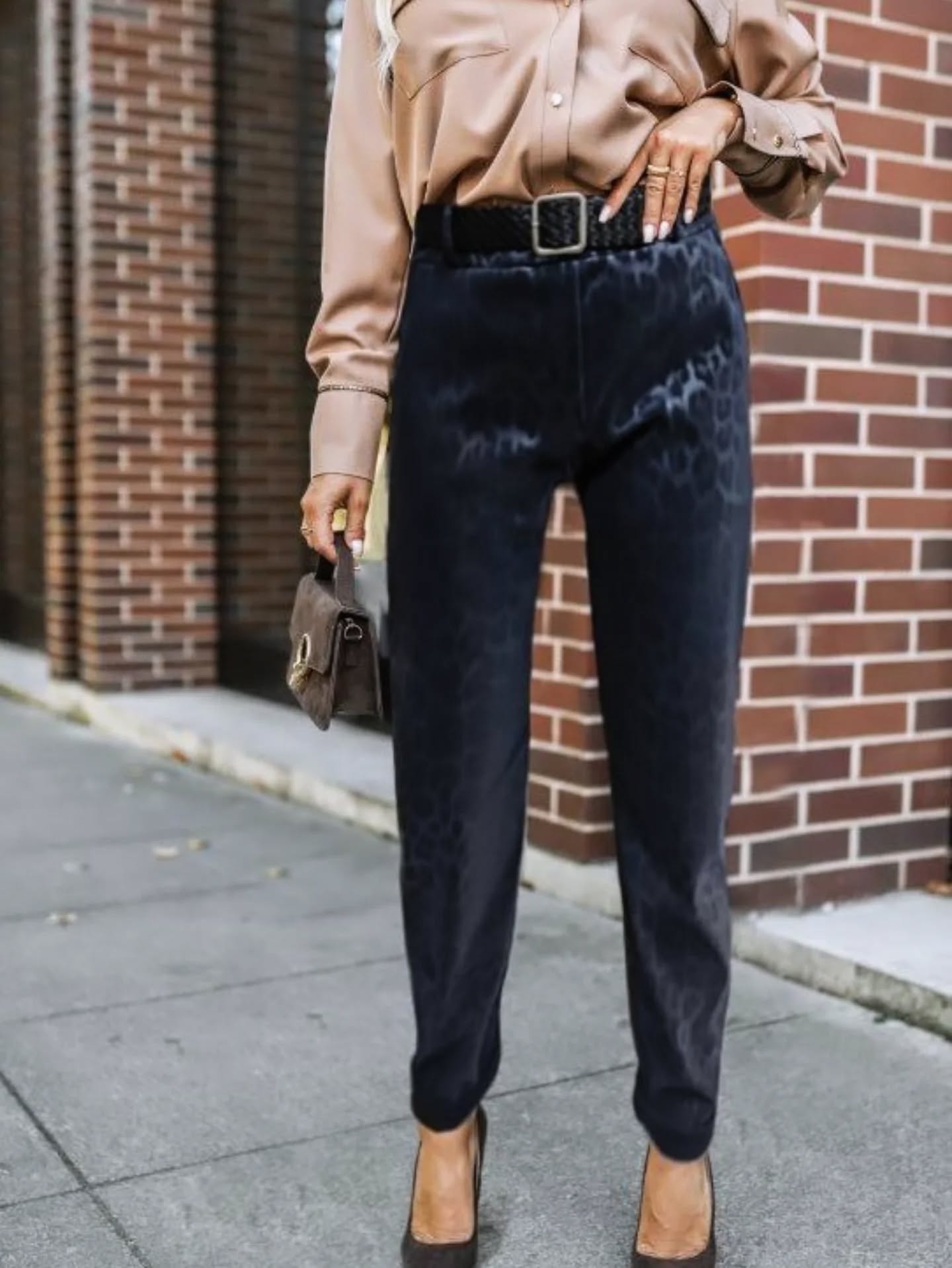 Oversized λεοπάρ δερματίνη παντελόνι με ζώνη