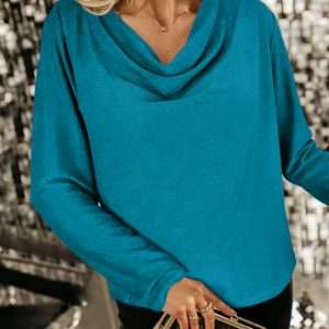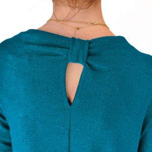 Πετρόλ ελαστική μπλούζα lurex με φιόγκο στο πίσω τμήμα