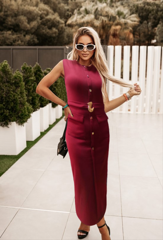 - Αμάνικο midi φόρεμα με ζώνη στη μέση