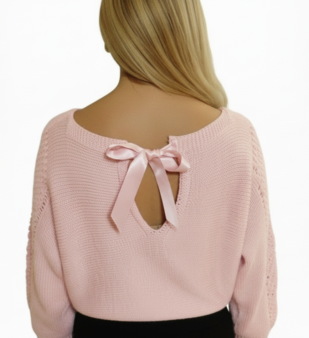 Πλεκτή μπλούζα με 3/4 μανίκι και φιόγκο στο πίσω τμήμα