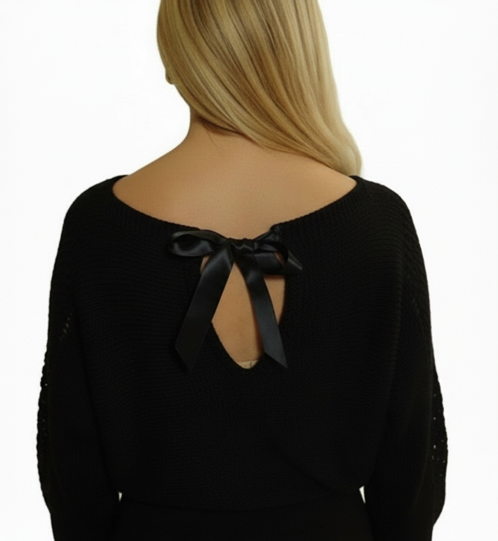 Πλεκτή μπλούζα με 3/4 μανίκι και φιόγκο στο πίσω τμήμα