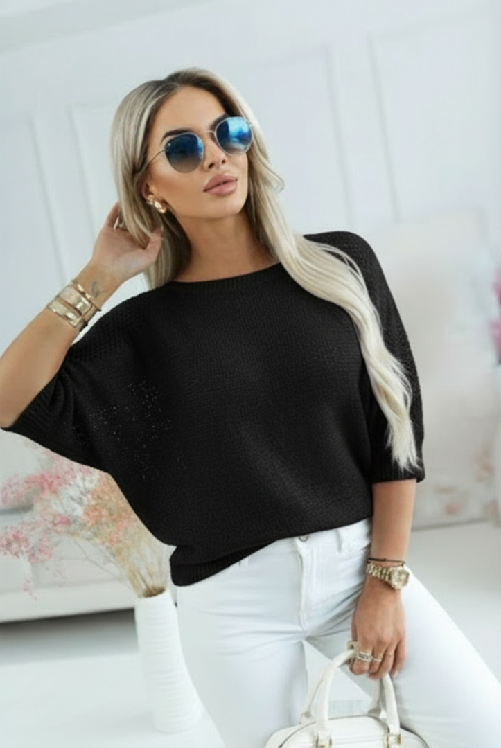 • Πλεκτή μπλούζα με 3/4 μανίκι και φιόγκο στο πίσω τμήμα